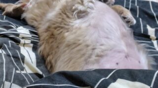 この家はそらにとって安全地帯らしい。。。今日も継続して、ぽんぽんぺろーんで寝ている。しかも本日は150点満点中、150点。クッションをきっちり使いこなし、後ろ足はだらーん。前足もふわっと脱力。お腹はこれ以上ないくらい無防備。警戒心、ゼロ。犬...