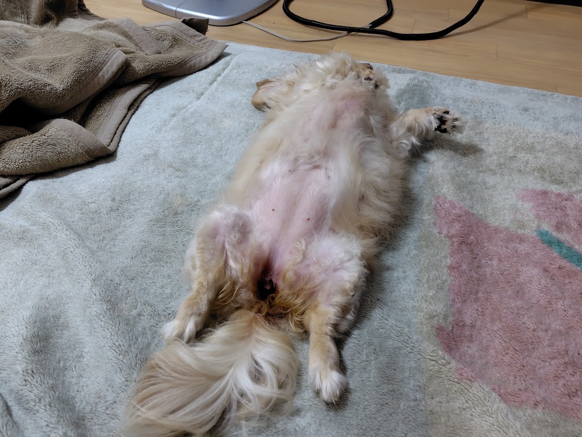 お腹は丸出し、足は投げ出し、完全に意識がない。