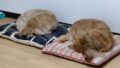 器の場所が分からず、鼻先で探りながら少しずつ確かめる。