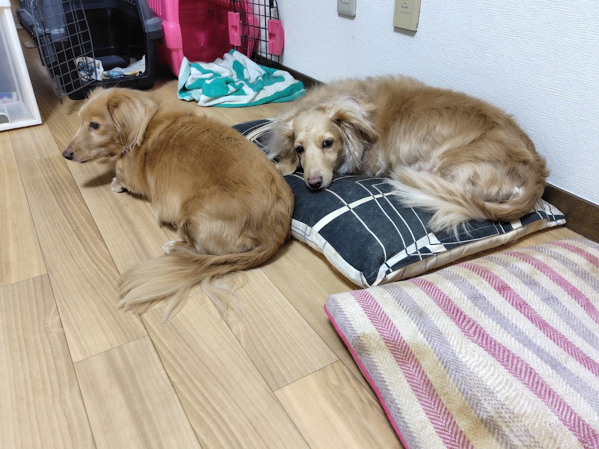 眠そうな顔でこちらを見ている二匹。