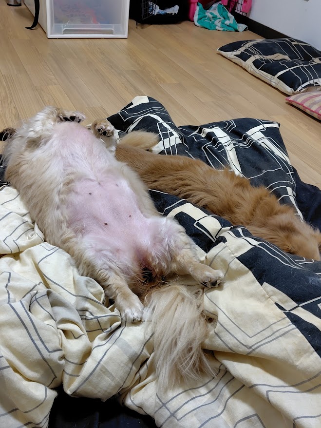 同じ犬でも、寝方も性格もずいぶん違うものですね。