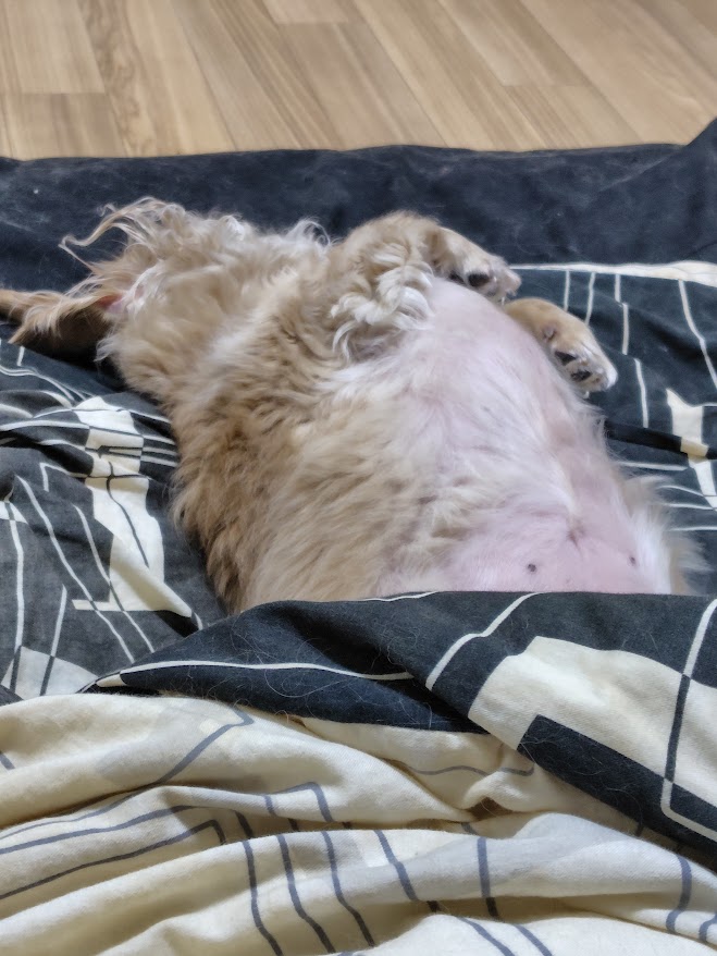 それにしても、猟犬だったはずのダックスフンドが、布団の上でお腹を出して昼寝をしている。